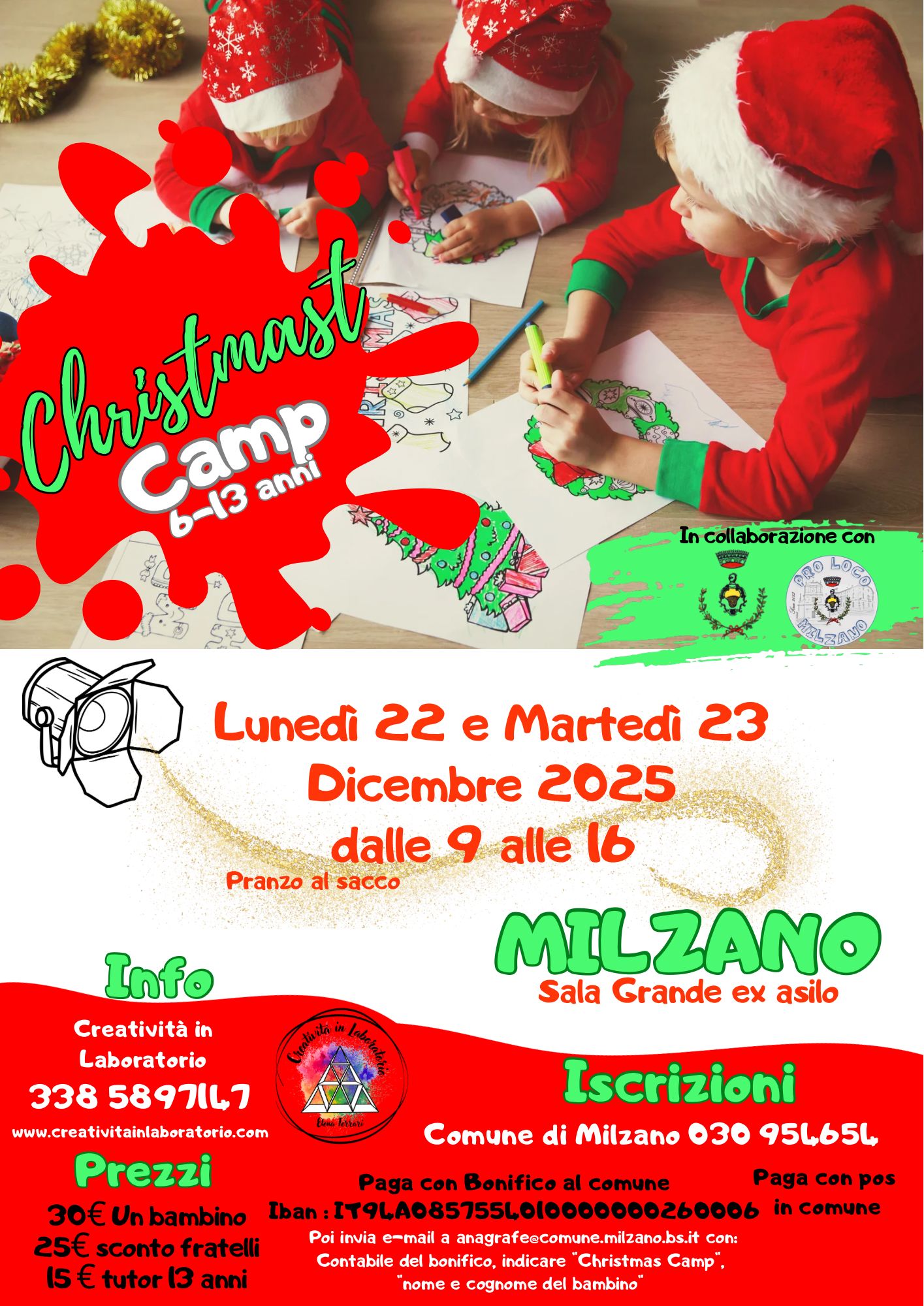 Immergiamoci nell'atmosfera più magica dell'anno! Christmas Cam è un epserienza indimenticabile per tutti i bambini dai 6 ai 12 anni. Un'intera giornata dedicata al divertimento, alla creatività e alla scoperta dello spirito natalizio. E' un esperienza educativa e divertente, pensata per stimolare la creatività, la collaborazione e il senso di comunità dei bambini.